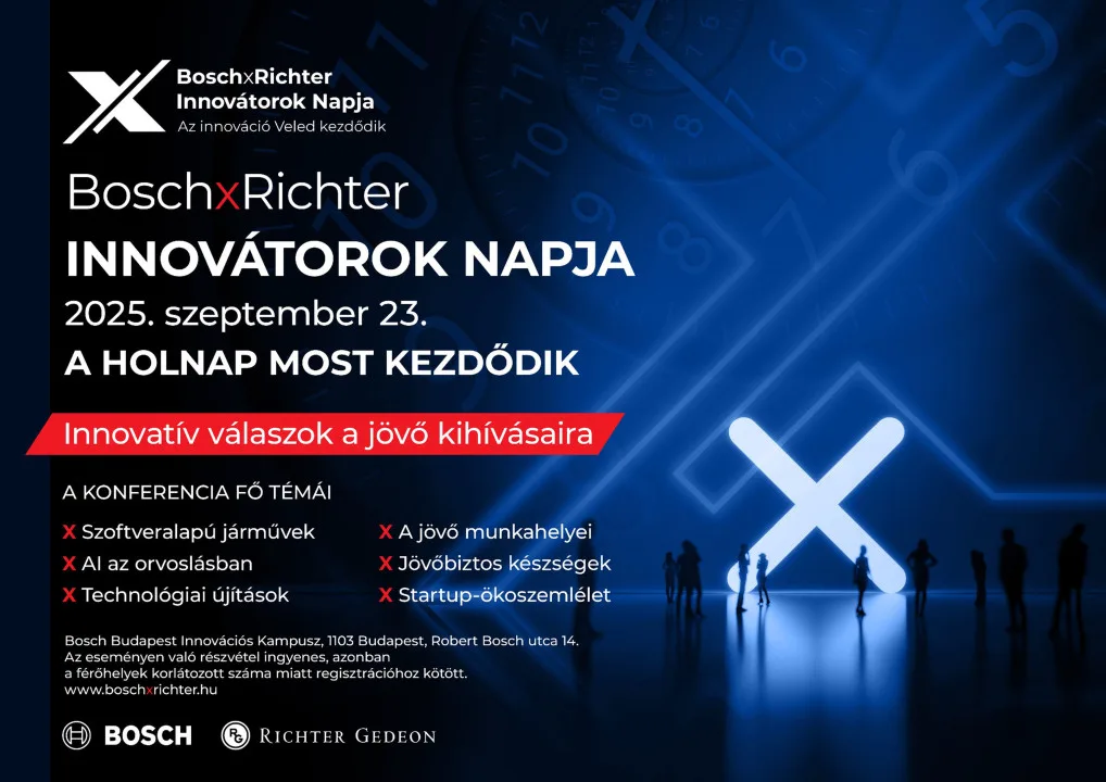 Korunkat a gyors változások és az összetett kihívások határozzák meg – a gazdasági és geopolitikai turbulenciák új stratégiát igényelnek nemcsak a mindennapokban, hanem a nagyvállalatoktól is. Merre tart az innováció? Milyen technológiai trendek formálják a következő évtizedeket? Milyen újításokban hisznek a magyarok? Hogyan legyünk munkavállalóként mi magunk is „jövőbiztosak”? Szeptember 23-án, a Bosch Budapest Innovációs Kampuszon – immár harmadik alkalommal – várja az érdeklődőket a BoschxRichter Innovátorok Napja. A rendezvény a közös jövőnket érintő legsürgetőbb kérdéseket helyezi fókuszba.